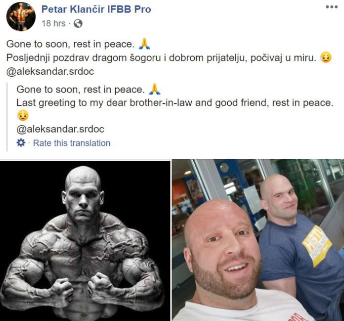 Popularni PRO-Bodybuilder Petar Klancir je na svojim drustvenim mrezama objavio "poslednji pozdrav" za svog veoma dobrog prijatelja Aleksandra