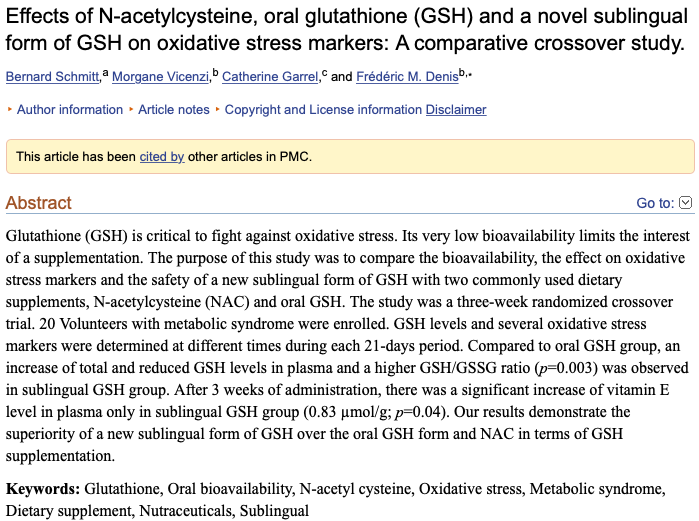 Naši rezultati pokazuju superiornost novog podjezičnog oblika GSH-a nad oralnim GSH oblikom i NAC-om u pogledu dodavanja GSH-a ispod jezika.
