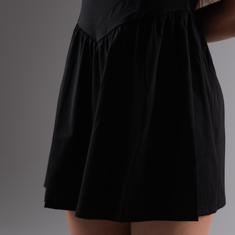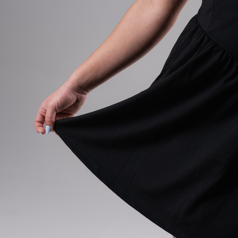 Sportska haljina sa ugrađenim kratkim hlačicama. Savršena ravnoteža udobnosti, stila i pokreta.