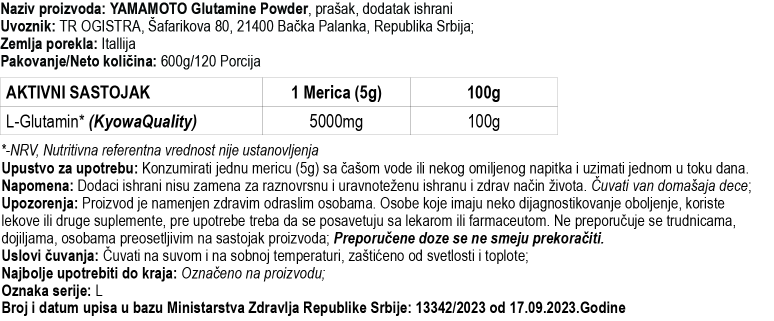 Glutamin je najrasprostranjenija aminokiselina u ljudskom organizmu i jedna je od najvažnijih graditelja proteina koji pomažu obnovu i rast mišićnih vlakana. Glutamin je skoro pa obavezan suplement za one koji intenzivno treniraju. Takođe, igra važnu ulogu u poboljšanju imunog sistema i nadoknade glikogena u organizmu, zato se preporučuje svima koji se bave sportovima izdržljivosti i snage.