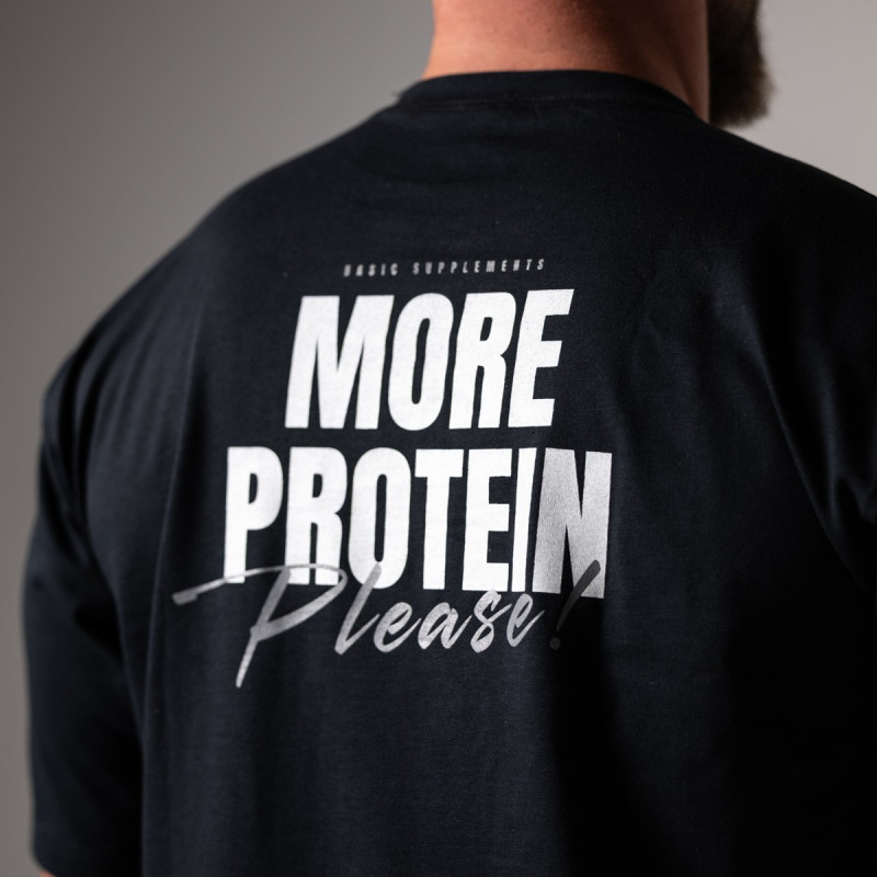 Oversized majica od 100% pamuka, sa simboličnim natpisom „BASIC SUPPLEMENTS Athletic Club“ napred i upečatljivim „MORE PROTEIN“ na leđima.